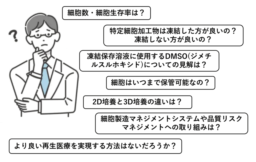 再生医療の提供に関することや、細胞製造(培養)について疑問点等ございましたら、遠慮なくお問い合わせくださいませ。