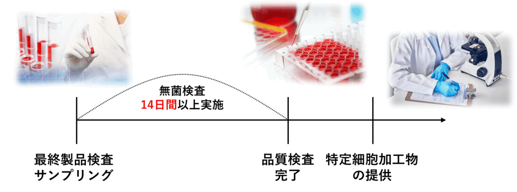 「早く患者様に提供するために無菌検査の期間を短縮して欲しい」という要望を頂くことがございますが、当CPCでは14日間以上の無菌検査で安全性の確認を実施して提供しております